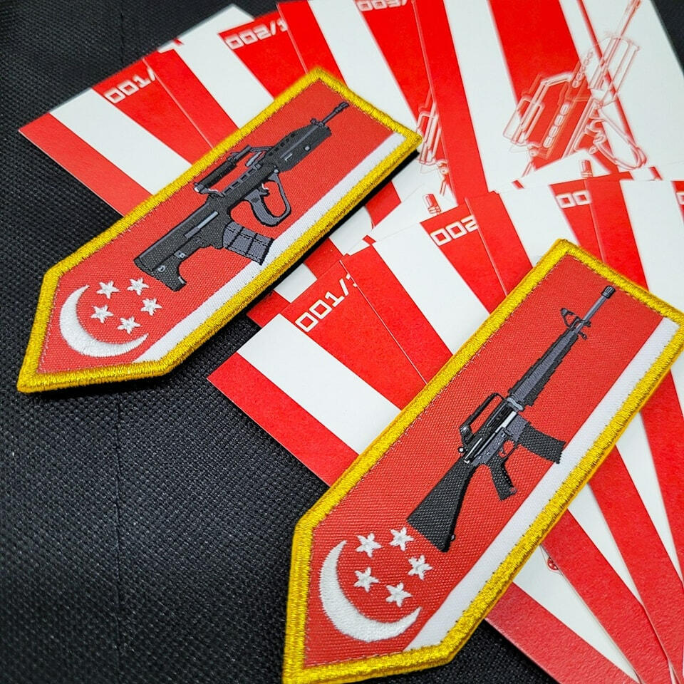 Decided to commemorate Singapore's 58th with the two firearms that our men in green (and navy and grey) carry - the SAR-21 and the M16S1.Also made metal velcro patches for the first time ever - the makers I work with seem promising but the process is arduously slow, with a long multi-step process that can incur errors at every step of the way.